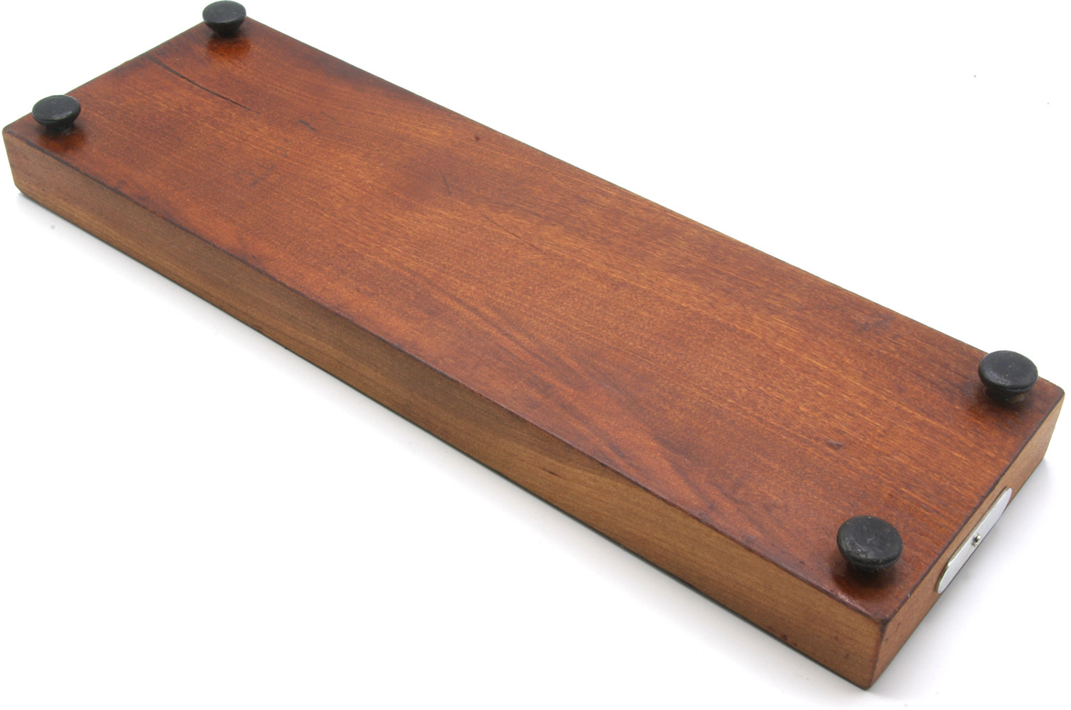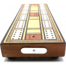 Lovely inlaid mahogany antique cribbage board inlaid with fine hardwood and bone detail with peg compartments at each end. 27 x 8 x cm with 2.5mm diameter peg holes. Our antique cribbage boards are sold complete with a new set of standard 25mm brass and chrome cribbage pegs. Playing card for size indication only.